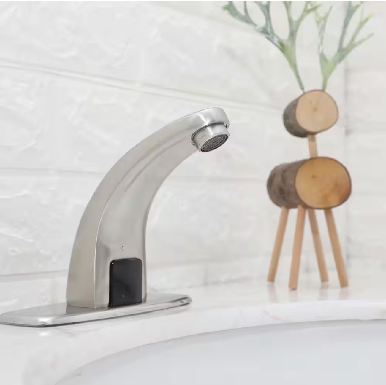Automatic Sensor Touchless Bathroom Sink Faucet With Deck Plate In Brushed Nickel